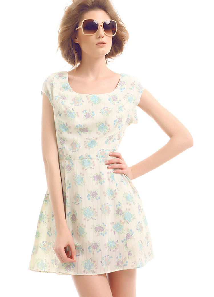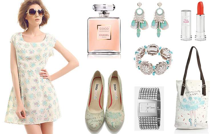 Bu haftaki kombinimde beyaz üzerine uçuk mavi çiçeklerle bezeli nefis bir kumaştan baharlık mini vintage bir elbiseyi; en az kendi kadar havalı özel tasarım bir çift topuklu ayakkabı ve onunla aynı desende pratik bir omuz çantası ile kombinliyorum.