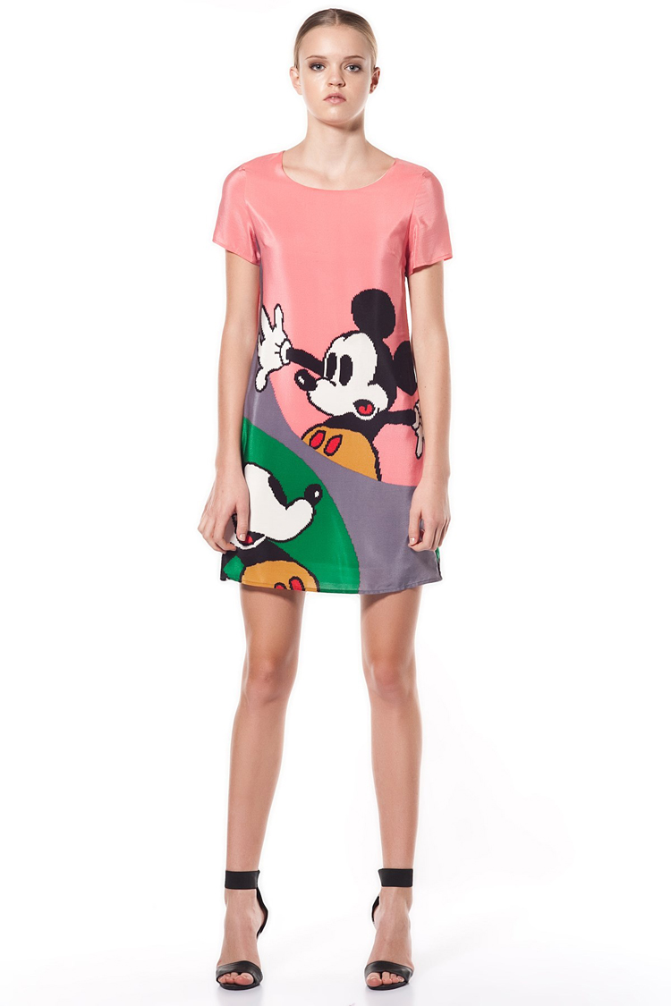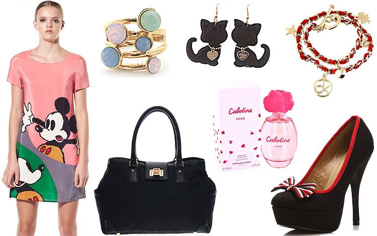 Bu hafta üzerinde Mickey Mouse baskısı bulunan yavruağzı rengi mini bir elbiseyi;siyah fiyonk detayı ile süslenmiş topuklu bir çift ayakkabı, siyah bir el çantası ve sevimli mi sevimli kedili bir çift küpe ile kombinliyorum.