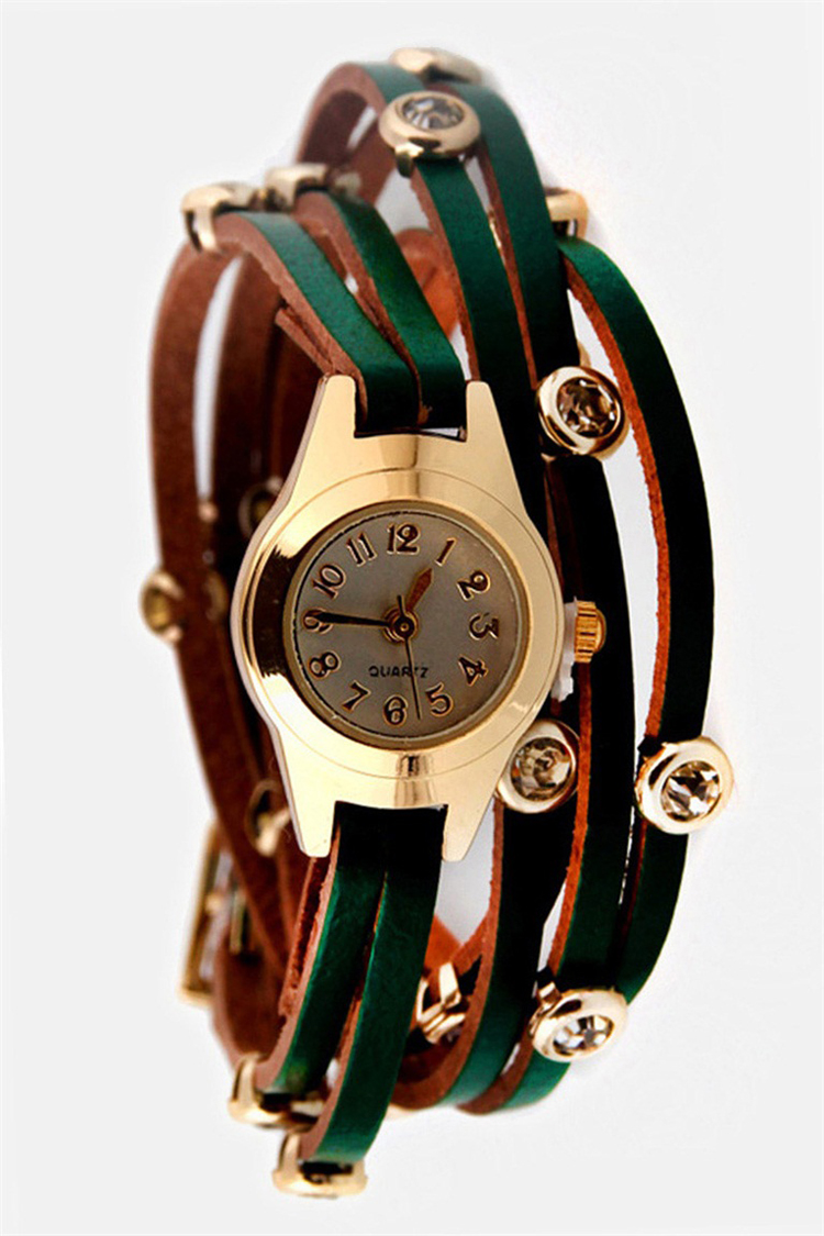 Bu aralar bileklik şeklindeki dolamalı saatler pek revaçta, hemen her takı kampanyasında en az birkaç değişik model görebilirsiniz. Ben bu modayı sevdim, yeşil deri kordonlu bileğe dolamalı bir saat bulup kombinime ekledim.