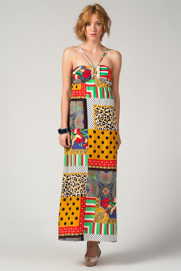 Bu hafta rengârenk patchwork desenli rahat kesim uzun bir elbiseyi; sarı platform topuk modern bir çift sandalet ve beyaz, kırmızı ve sarının karışımından oluşan hem spor hem de şık bir çanta ile kombinledim.